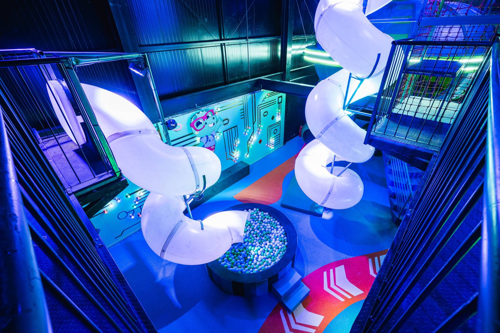 Escorregadores de oito metros de altura, uma bicicleta que gera energia para uma simpática “montanha-ursa”, sala com balões espelhados, piscinas de bichinho de pelúcia e jogos analógicos são algumas das atrações entre as mais de 50 na Oficina da Diversão, parque anexo cujo acesso é livre para hóspedes.