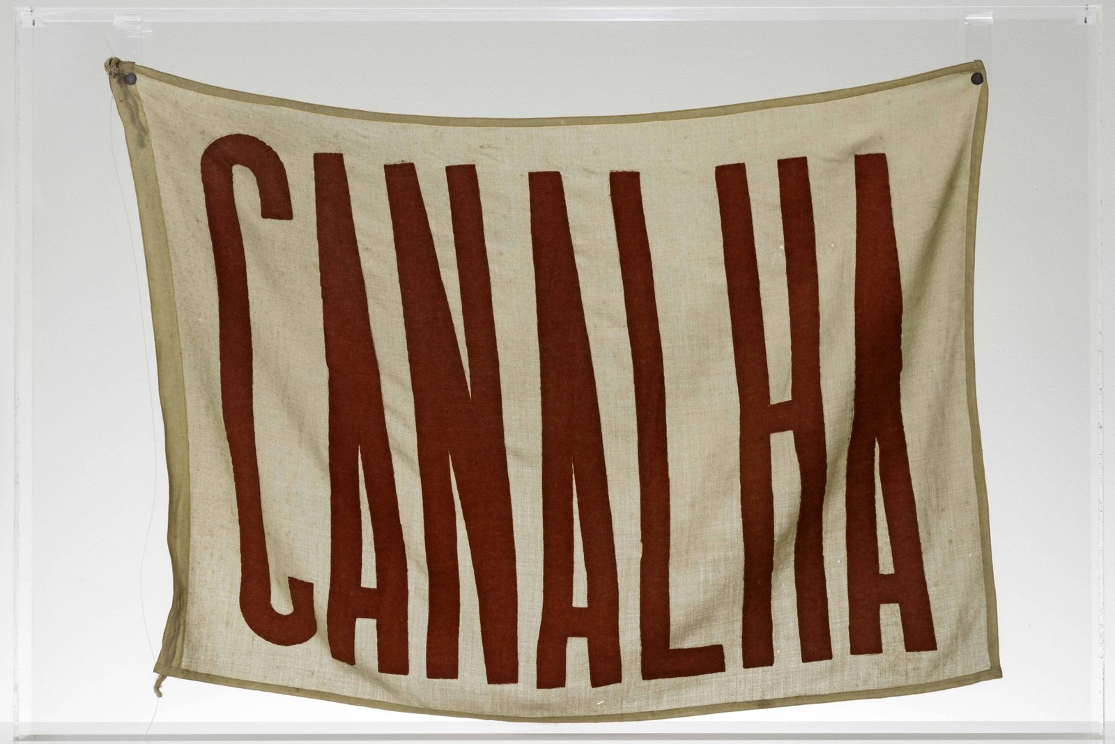 O trabalho foi feito em 1968, período em que a repressão da ditadura militar se exacerbou em razão do AI-5. Dois anos antes, Cordeiro também havia recorrido a uma bandeira para transmitir mensagens. Em um tecido, lê-se a palavra “Canalha” em letras garrafais tingidas de vermelho.