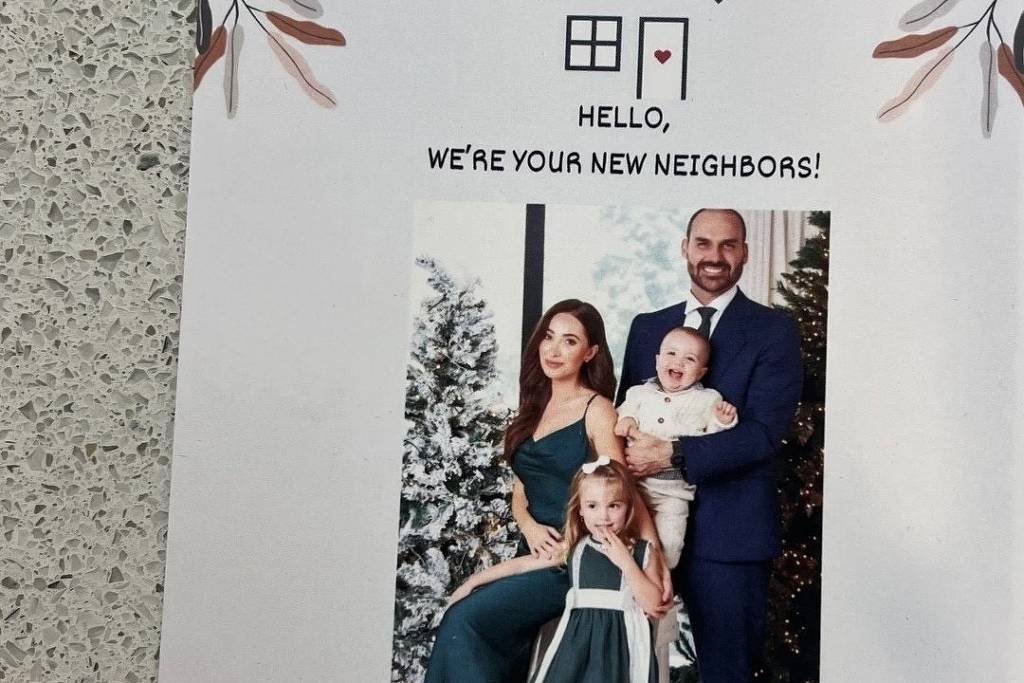 O casal não revela a cidade onde mora. Na mensagem, Heloisa diz que, após assar pão de queijo e imprimir cartões, “todos foram entregar para os novos vizinhos”.