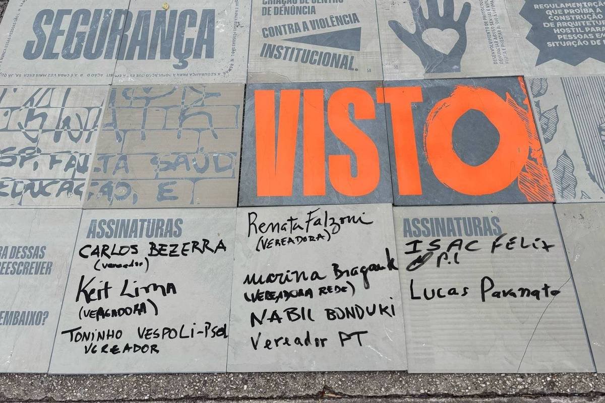 Até sexta-feira (28), os vereadores Carlos Bezerra Jr (PSD), Keit Lima (PSOL), Toninho Vespoli (PSOL), Renata Falzoni (PSB), Marina Bragante (Rede), Nabil Bonduki (PT), Isac Félix (PL), Lucas Pavanato (PL) assinaram uma estrutura de concreto, no formato de um livro de 2,5m x 4,8m. Nela, estão inscritas pautas, por exemplo, sobre a alimentação, segurança, emprego e saúde.